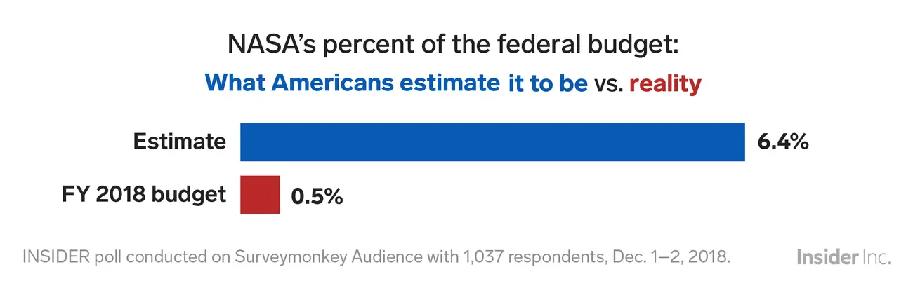 Americans wildly overestimate how much money NASA gets each year. In fact, when asked by Business Insider in 2018, some answers to the question were so extreme that the top 5% of responses had to be removed to show a more representative result.