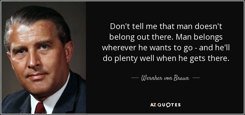 These can seem reasonable. One looks around and sees all the suffering here on earth, and suddenly space exploration seems like a gratuitous luxury. Maybe man should first perfect the Earth before he tries to go into space?