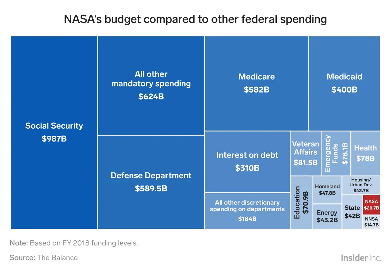 This disconnect from reality has caused many people to call for cutting NASA's funding. In May 2025, a national survey asked the public which federal programs should be reduced to address the budget deficit, and NASA was the top candidate, with 63% favoring a reduction. Yet NASA's budget is a pittance compared to other government expenditures.